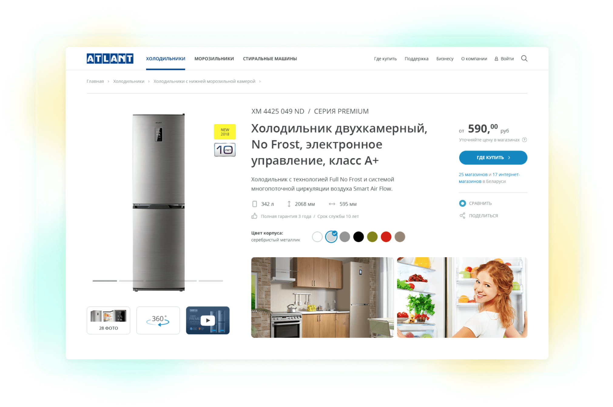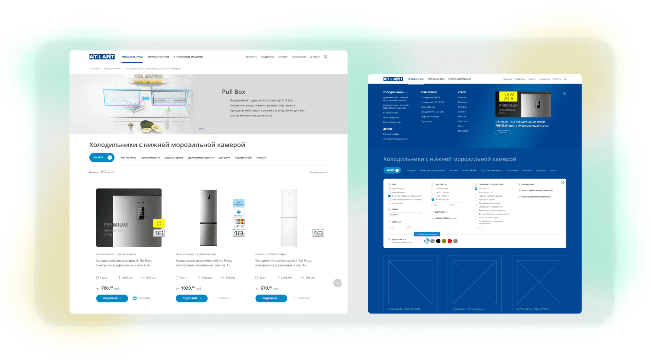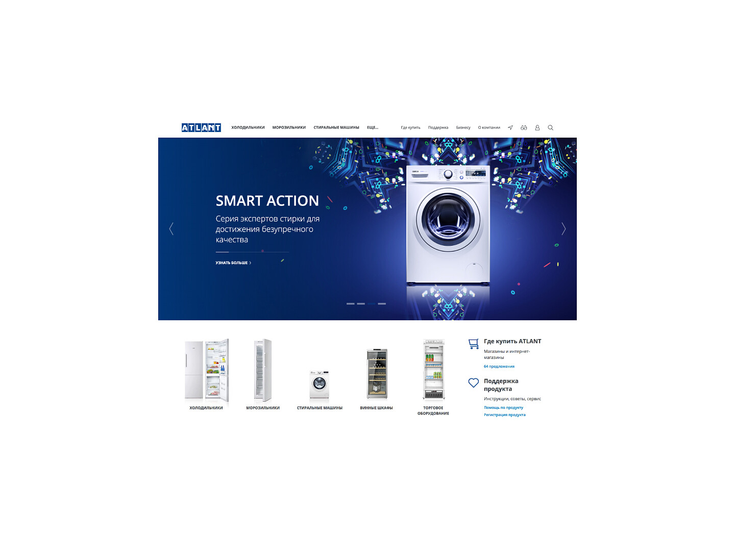 Компания ATLANT добилась признания на рынке бытовой техники благодаря практичности, качеству и надежности. Сайт такой компании должен отражать это на каждой странице, в каждой функции — но это лишь первый этап в разработке всей онлайн-системы.