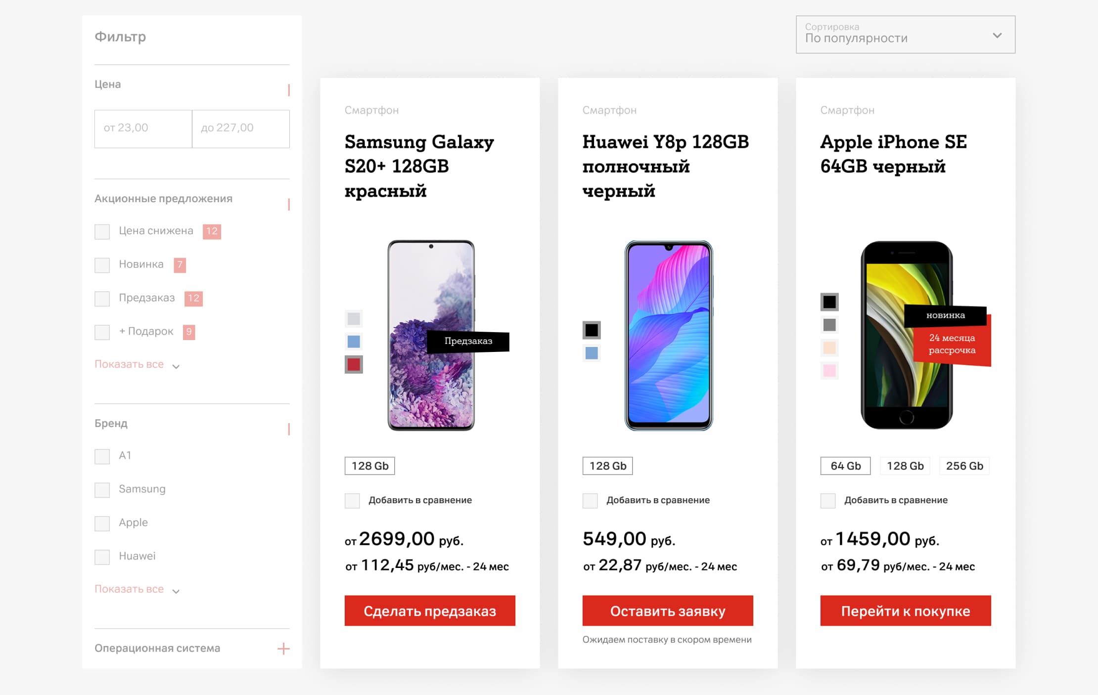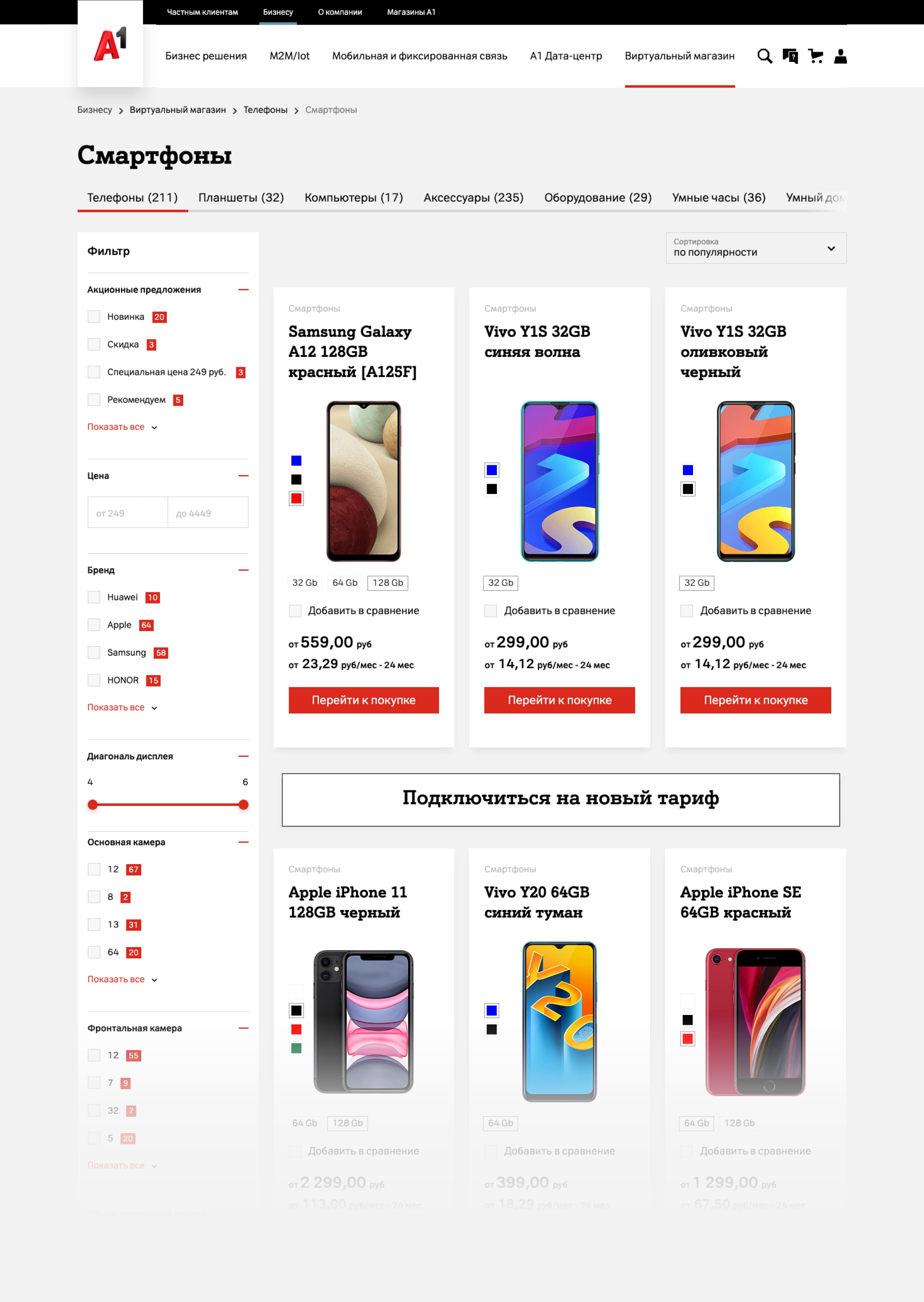 Нашей командой был разработан каталог товаров с возможностью фильтрации, удобной навигацией и инструментом предварительного просмотра, благодаря которому пользователь увидит все нужные характеристики и данные о товаре и сможет поменять модель, не переходя к самой карточке.