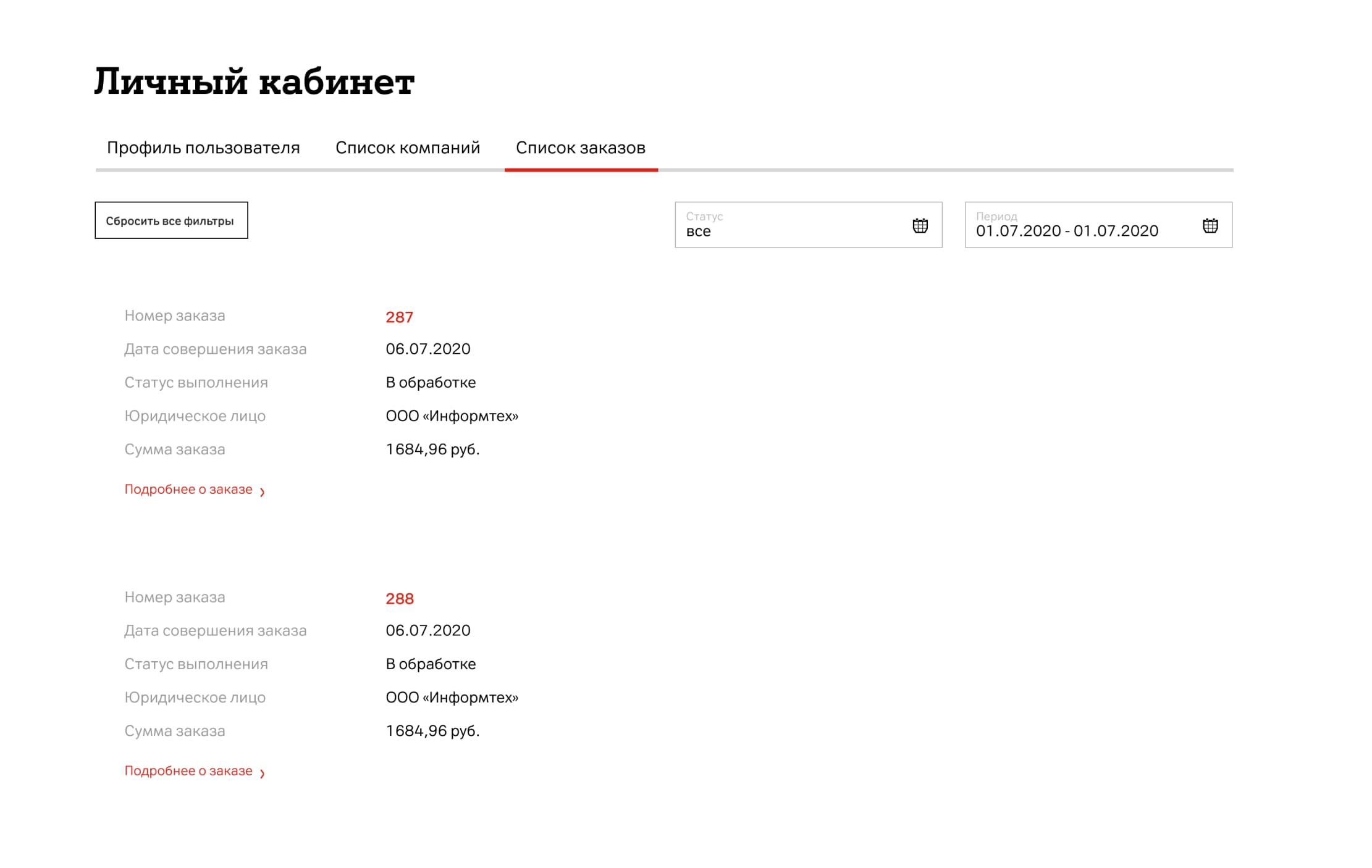 В рамках одной покупки возможно заказать сразу несколько товаров, при этом в одной заявке могут находиться заказы на товары в разных статусах: «в наличии»; «предзаказ»; «ожидается поставка».